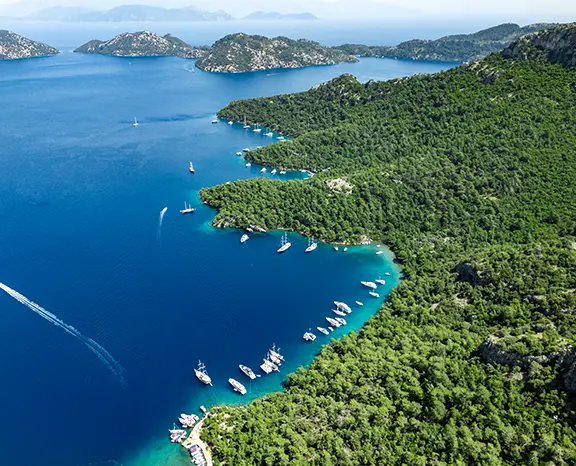 Your trip starts in Fethiye, where Lycian tombs cut into cliffs silently guard a busy harbour. Sail southwest to Gemiler Island, a time capsule of Byzantine remains twisted with wild olive trees. Wander stone walkways where pilgrims once walked, then snorkel in bays so clean you will find ancient amphorae resting on the sea floor. Anchor in Coldwater Bay, where freshwater springs mix with the sea, as the sun lowers. Explore the cold embrace of the bay then eat under the stars, the flavor of grilled octopus and citrus-dressed salads still on your lips.