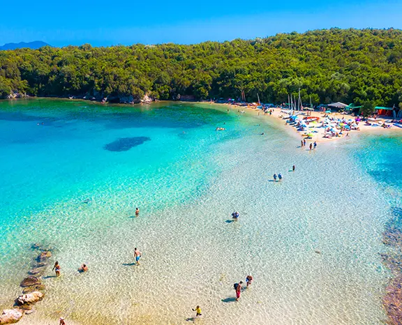Go south to Mourtos, a group of islets in the Syvota archipelago. Drop anchor in the Blue Lagoon; its sapphire to emerald water gradient is gradual. Swim, paddleboard, or just float; then land in Syvota's harbor for bourdeto (spicy scorpionfish stew) at a taverna covered in bougainvillea. Watch the bay spark with the lights of yachts and laughter as evening falls.