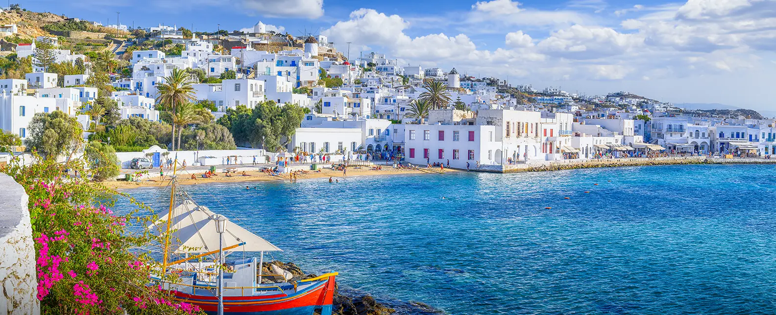 As you hurl toward Mykonos, the "Island of the Winds," feel the Meltemi breezes fill your sails. First to show guard over a labyrinth of sugar-cube homes and fashionable stores are the famous white windmills. Wander along the streets of Mykonos Town, where cobalt doors frame Instagram-perfect scenes. By noon, find a sunbed at Paradise Beach—the pulse of DJ mixed with the sea. Join the sparkling throng in Little Venice as night falls and sip cocktails while the sun sets like a golden coin in the sea.
