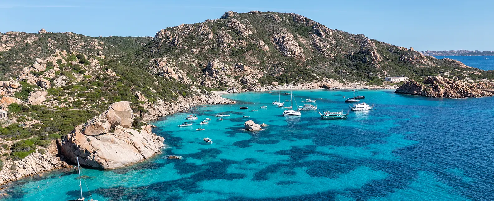 Slide west to the wild gem in La Maddalena's crown, Spargi. Drop anchor in Cala Corsara, where pink granite boulders hug liquid sapphire. Beachcombing for sea glass or marking a private strip of sand for a picnic of sun-warmed tomatoes spends the day. Explore the tidal pools of the Piscine Naturali; their green depths alive with darting bream.